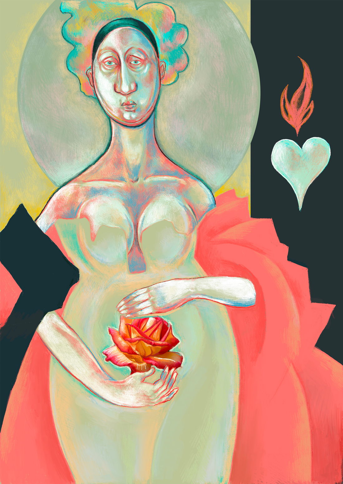 Leidl's art is a blend of the sacred and satirical, featuring secretive and sensual images that reflect the human condition in all of its pathos, beauty, and absurdity. Her characters—both human and beast—inhabit a "visualosphere" that is at once contemporary, but peppered with ancient symbolism, visual puns and dark humour leavened with the exuberant and sensual use of colour and representation.